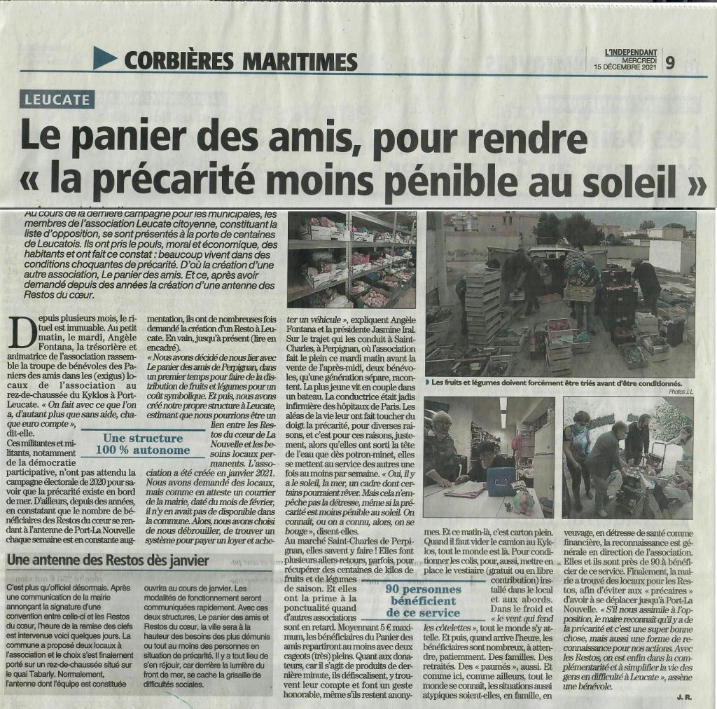Un bel article à lire dans l’Indépendant du 15 décembre dernier